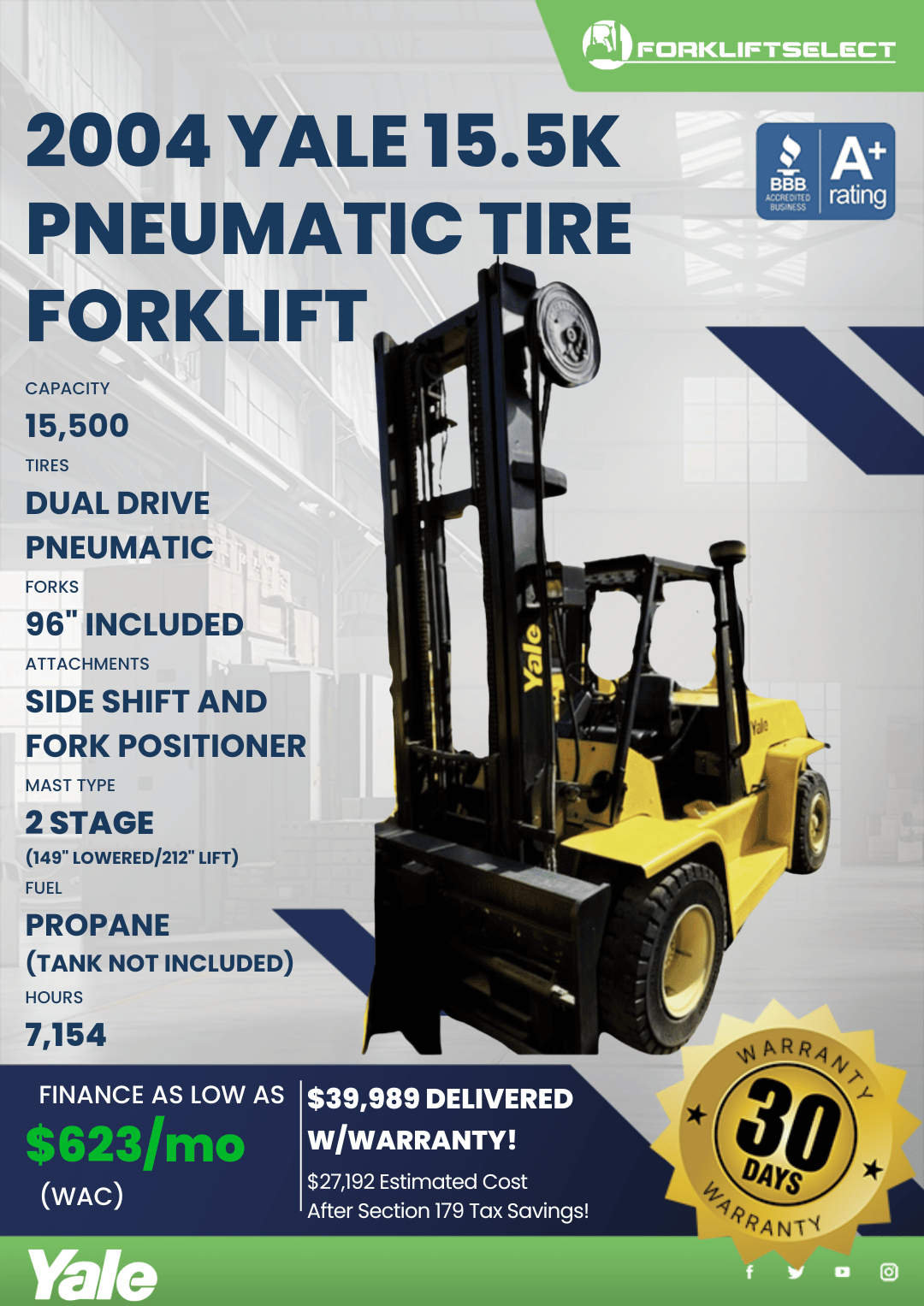 2004 YALE 15.5K PNEUMATIC TIRE FORKLIFT