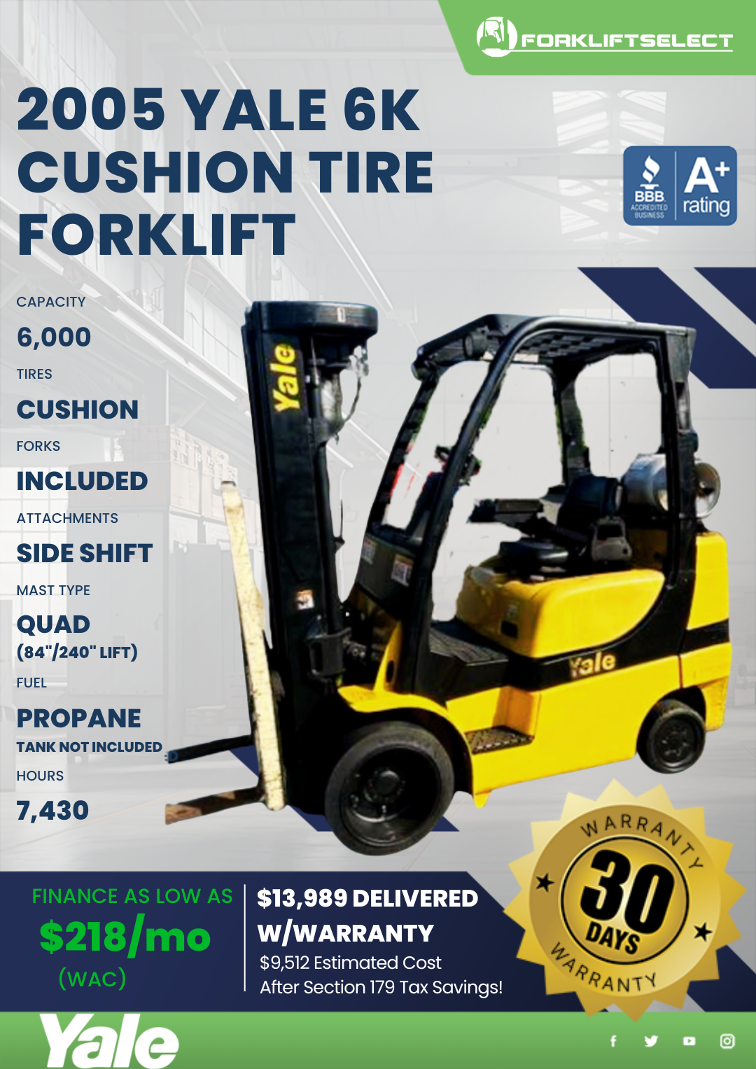 2005 YALE 6K CUSHION TIRE FORKLIFT
