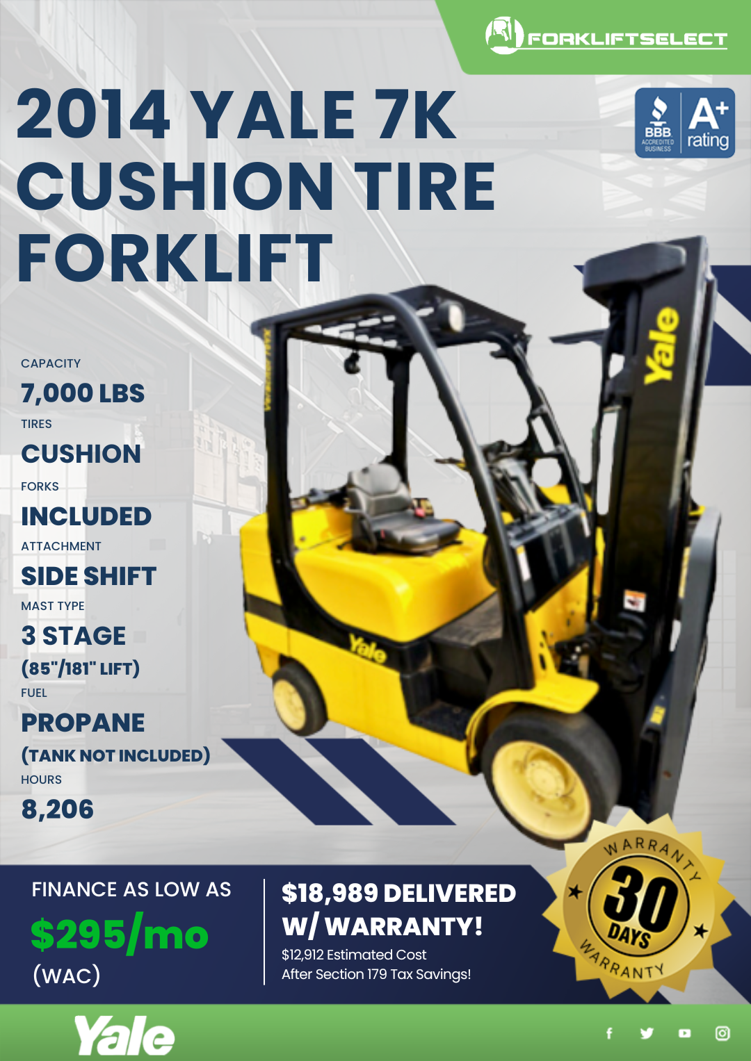 Our team brings 50+ years of material handling experience, making us industry leaders. We are highly regarded as top forklift suppliers with an A+ BBB Accreditation.