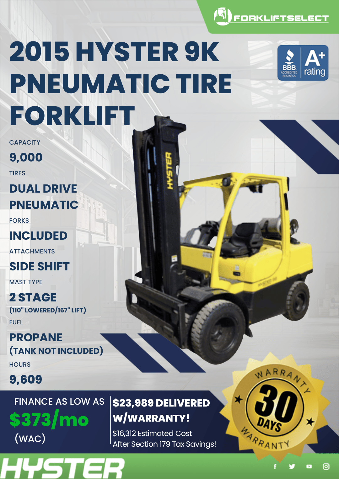 2015 HYSTER 9K PNEUMATIC TIRE FORKLIFT