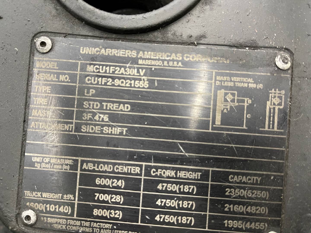 2020 UNICARRIERS 6K CUSHION TIRE FORKLFIT