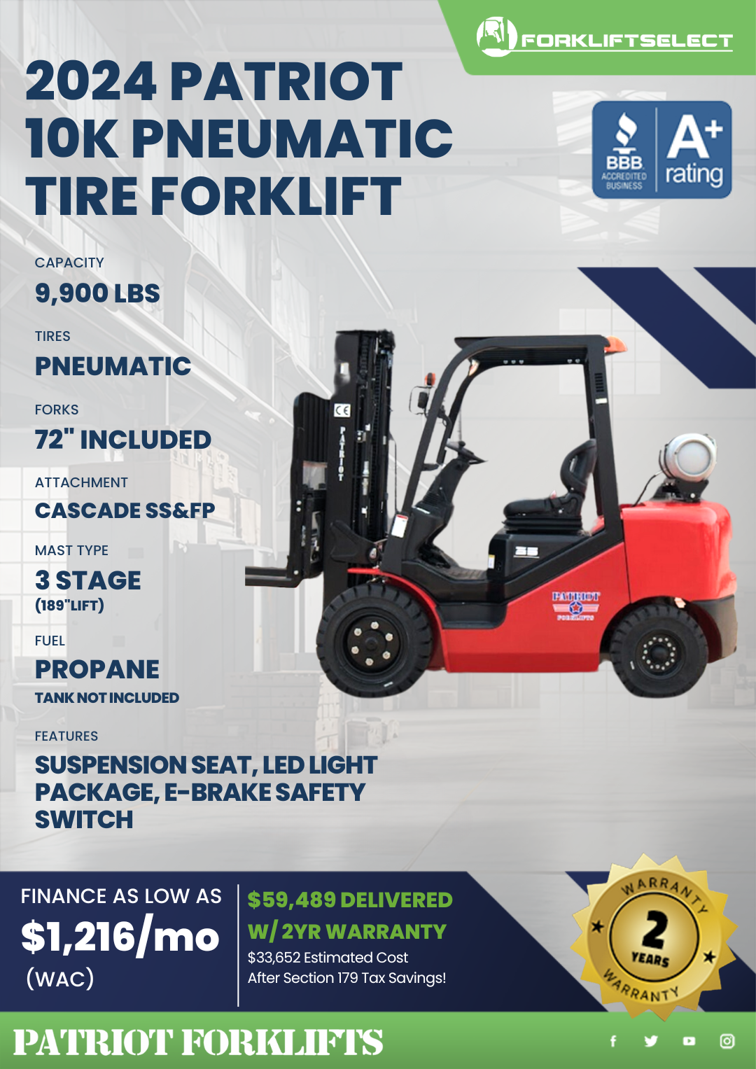 2024 patriot 10k pneumatic tire forklift